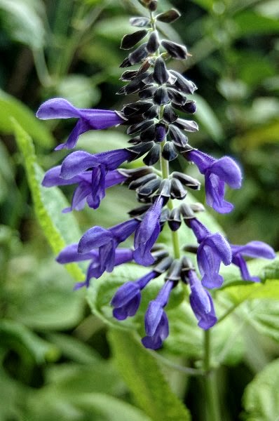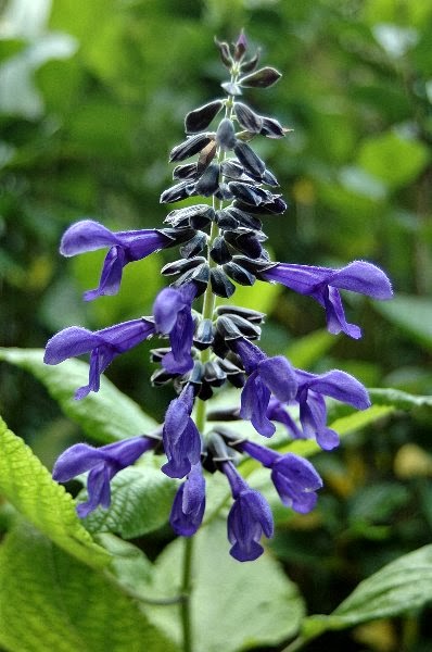 A veces tienes mucho tiempo y llevas la cuenta de lo que crece, se seca y va a florecer en el jardín casi al día y esperas a que abra tal o cual planta pero otras veces cuando andas mal de tiempo libre tan solo riegas porque andas atareado con otras historias .Entonces es cuando te sorprendes al salir al jardín ,como me paso ayer ,y descubrir una salvia de color azul que no sabía tan siquiera que iba a florecer.