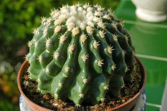 Echinocactus grusonii cultivar de pua intermedia .No se el nombre de este reciente cultivar.