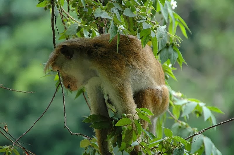 Macaco cangrejero,macaca fascicularis, en isla Mauricio,introducido por la población asiática y asilvestrados constituyen una verdadera plaga como en tantos otros lugares .Al ser omnivoros comen todo tipo de insectos,huevos de aves y pequeños animales que a veces son especies en peligro de desaparición.