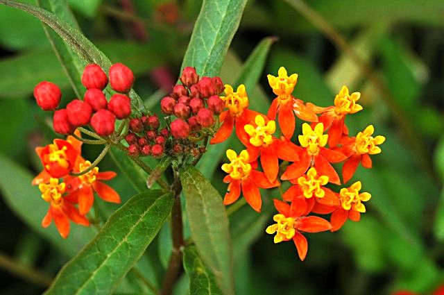 Asclepias curassavica , originaria de Sudamérica esta planta atrae a las mariposas y sobre todo a la mariposa monarca (Danaus plexippus) a la que sirve de alimento para sus orugas .En el Parque de la Paloma existe una pequeña colonia de esta mariposa y es fácil verla revolotear alrededor de estas plantas. Ayer estuve en este parque y pude observar cinco ejemplares simultaneamente.