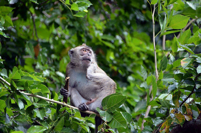 Macaco cangrejero ,Macaca fascicularis.Introducido por la población asiática de la isla constituye una plaga como en otros muchos lugares del mundo ya que al ser omnivoros como todo tipo de insectos,huevos de aves y otros pequeños animales que a veces se encuentran en peligro de desaparición.