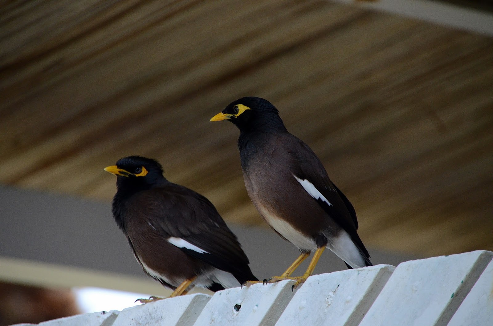 Mina común ,Acridotheres tristis.Esta ave paseriforme pertenece a la familia sturnidae y es procedente de Asia.Es un ave omnívora e invasora(está incluida entre las 100 especies invasoras más dañinas) con un caracter muy territorial lo que perjudica a las especies autóctonas.es un ave que prospera en los medios urbanos y resulta muy abundante en Mauricio y en Reunión.