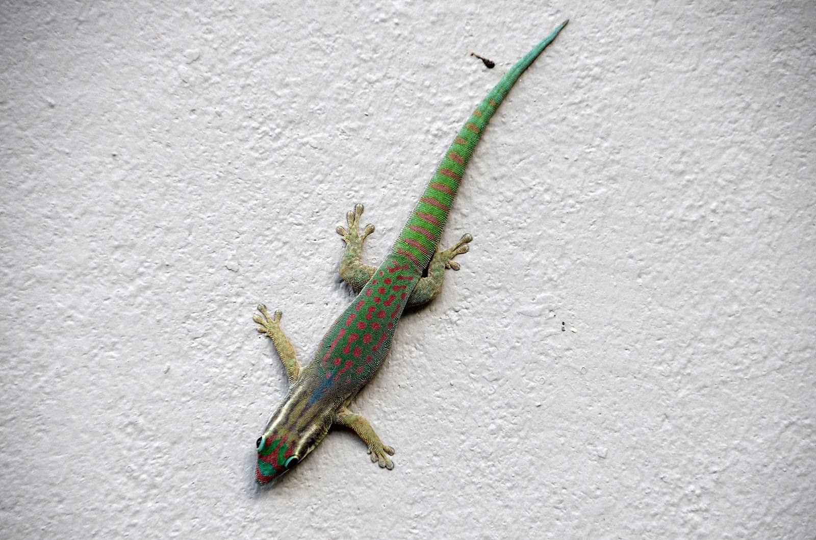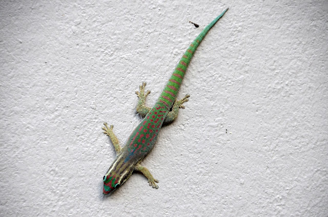 Phelsuma laticauda ,estaba dentro de la habitación del hotel en isla Reunión y la cogí sin problemas para sacarla fuera al jardín.