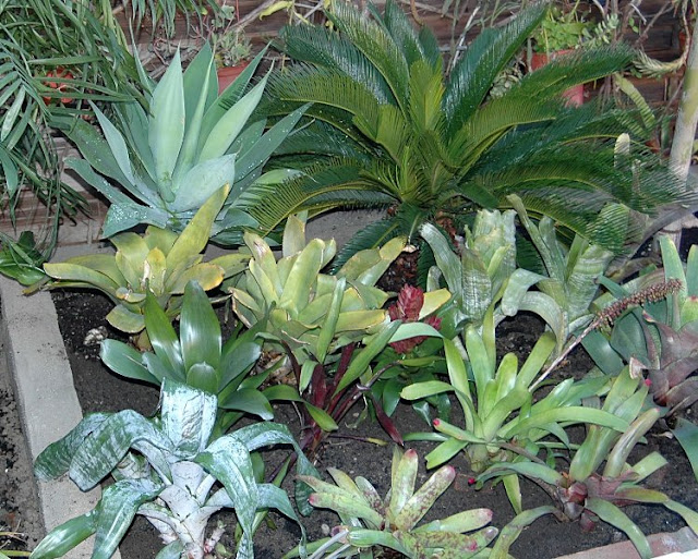 Grupo de bromelias de distintas especies ,espero que se adapten bien al nuevo emplazamiento que es demasiado soleado.
