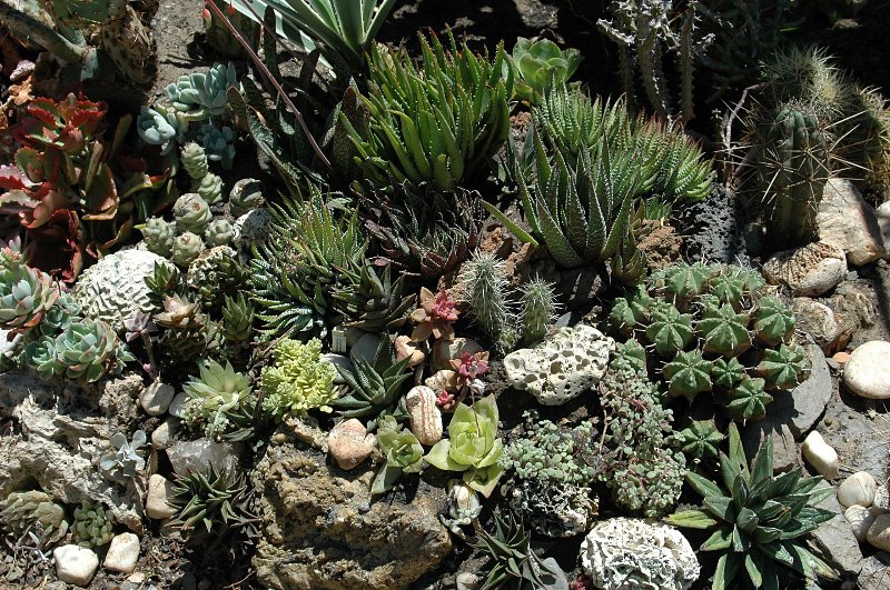 Para las suculentas he hecho un montículo con rocalla para que quedara todo el jardín tan plano sujetándolo con rocas se formado un conjunto muy variado y colorido.Con la tierra nueva crecerán y volveré a tener el mismo problema de saturación pero para eso tengo las tijeras para ir controlando y replantando.