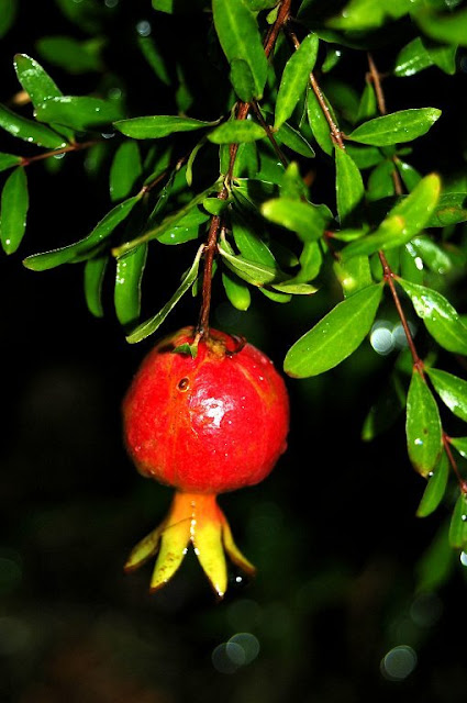 Punica granatum "nana ", este árbol frutal caducifolio aunque actualmente está extendido y naturalizado por toda la cuenca mediterránea tuvo su origen en la zona que va desde Irán hasta el norte del Himalaya en la India. Su presencia está ligada a toda la cultura clásica: fenicios ,griegos,romanos ...Junto con el naranjo y el olivo Aunque fueron los bereberes los que la introdujeron en parte de Europa nombrando a la hermosa Granada con el nombre de este fruto.La variedad que yo tengo es la enana ,que no da tantos frutos a no ser que se polinice artificialmente.Requiere a finales de otoño una poda de formación para mantener una forma compacta y armónica si no crece detartalado.