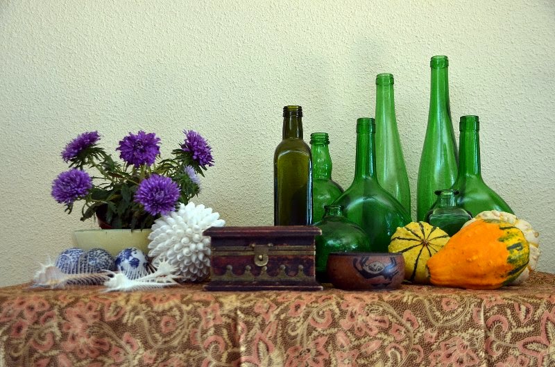 He decidido hacer una serie de fotos de Naturalezas muertas agrupandos plantas y objetos que me gustan .