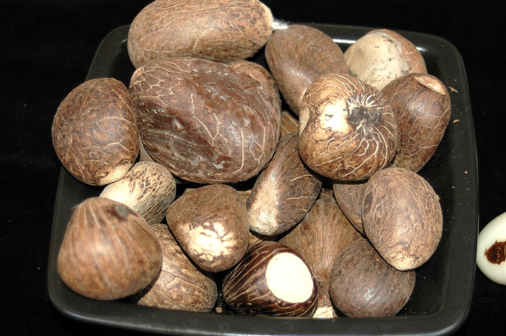 Fruto de phytelephas aequatorialis .Este género de palmeras originarias de América tropical desde Panamá a Sudamérica comprende 28 especies.Sus semillas son conocidas como tagua o marfil vegetal por su dureza y aspecto parecido al marfil muy apropiadas para hacer tallas y otras artesanías.