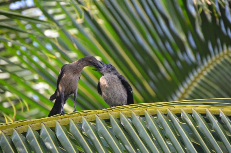 Quiscalus mexicanus ,clarinero hembra alimentando a su polluelo.Es una de las aves más comunes en todo el Caribe .El macho es totalmente negro.Estos están fotografiados en isla Iguana en Kuna Yala (Panamá).La isla es diminuta y con escasos recursos alimenticios para cualquier animal que no sea marino .Me perguntaba de que se podrían alimentar allí y a la mañana siguiente me vino la respuesta .Todos los días el mar arroja gran cantidad de algas entre las que se encuentran organismos que le sirven de alimento a estos pájaros madrugadores que en todo el Caribe te despiertan con sus trinos.Los he visto en Cuba,República Dominicana ,México y ahora en Panamá y Costa Rica.