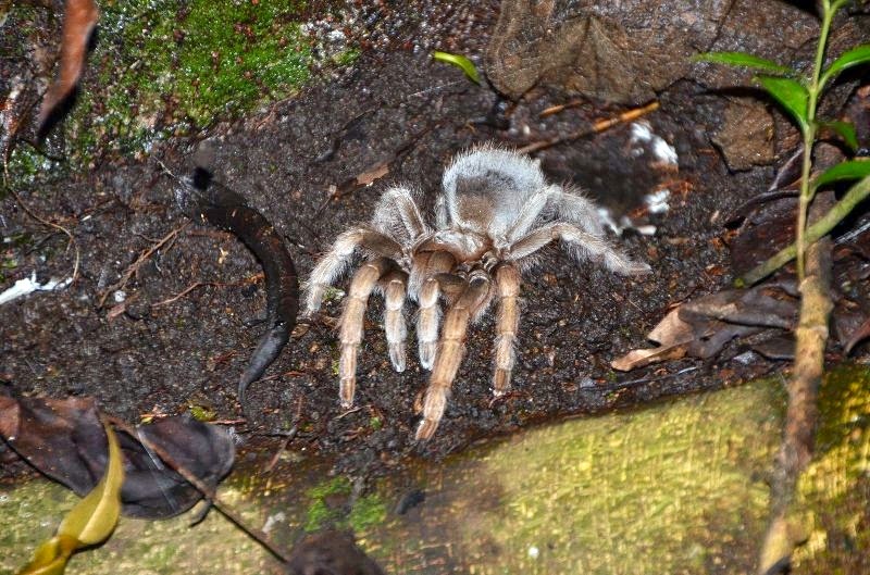 Esta tarántula albina es endémica de Monteverde en Costa Rica y la pudimos observar en un recorrido nocturno con guía a través de la selva de dos horas de duración que me resultó más interesante de lo que me esperaba.