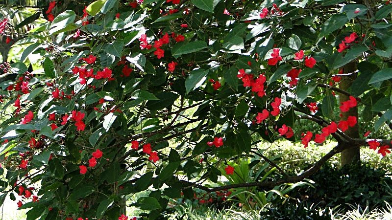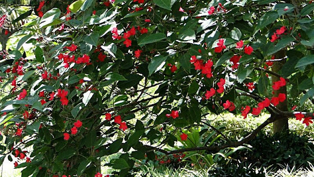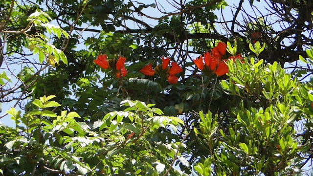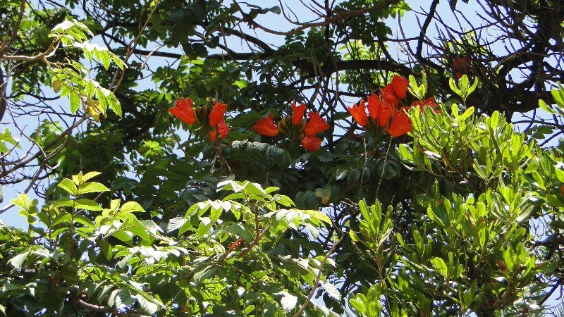 Spathodea campanulata ,tulipero de Gabón es una bignonia arbórea que puede alvanzar los 25 metros.El tamaño y color intenso de sus flores hacen que cuando están en plena floración llaman poderosamente la atención a la vista. En Málaga no hay demasidos ejemplares pero en Canarias es muy común así como en toda sudamérica donde recibe distintos nombres según el país ,como "gallito en Venezuela" o "nandí" en Puerto Rico. Su madera es muy blanda.