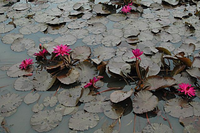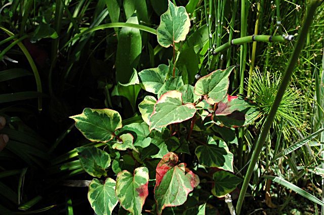 Cabomba pulcherrima ,aunque para muchos autores es una variedad de cabomba caroliniana var. pulcherrima ,su color rojizo destaca entre los tonos verdes de la mayoría de las plantas .