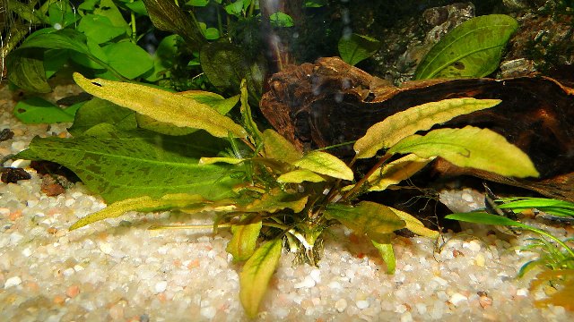 Cryptocoryne sp. ,llamadas trompetas de agua por la forma de sus flor, pertenecen a la familia de las araceas y el género está compuesto por unas sesenta especies originarias de Asia y Nueva Guinea.La variedad de tamaños colores y texturas hacen de estas plantas unas de las favoritas de los acuariofilos.