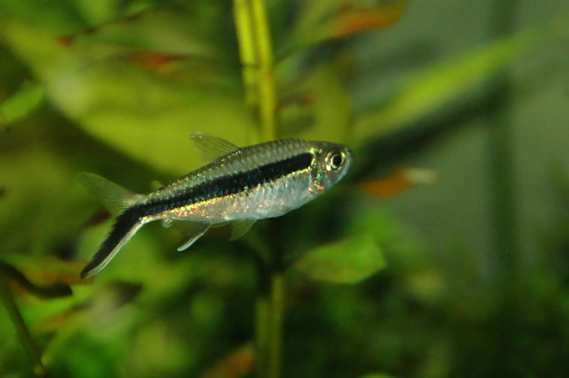 Thayeria boehlkei ,pez pingüino ,de nado vivaracho siempre en grupo, nada poniendo el cuerpo en oblicuo.Es originario del rio Tocantins en Brasil.