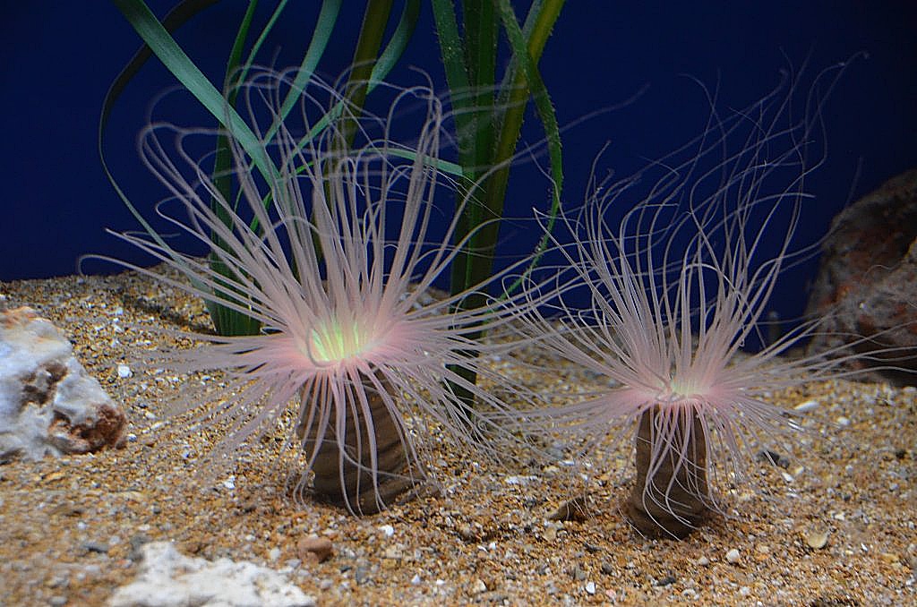 Actinias en uno de los acuarios del Oceanogràfic .