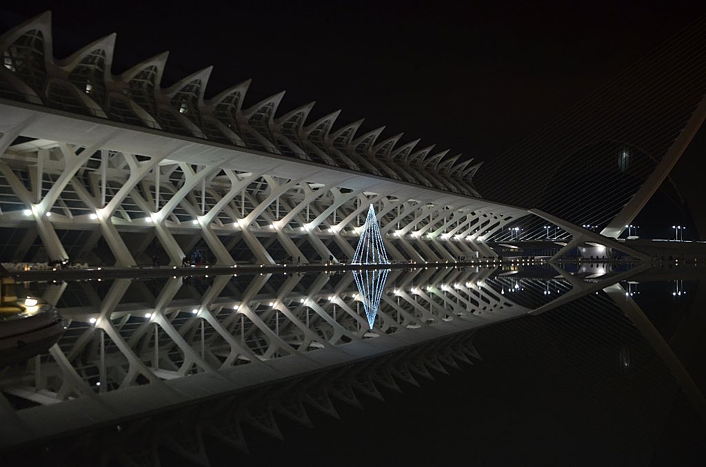 Vista nocturna del Museo de las Ciencias Principe Felipe .