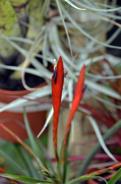 Para mí el más espectacular es el Kalanchoe mortagei que aunque aun no ha desarrollado la flor entera ,ya tiene un color impresionante.Esta especie no es fácil de conseguir y la que tengo es de la isla de la Palma .Recorriamos la isla en coche y en una zona de curvas y mi visión indirecta de botánico me dijo que había visto de pasada un rojo que no e era familiar.Así qué paré en cuantoy regresé apié hasta el luagar donde allí estaba un kalanchoe mortagei en flor era este.