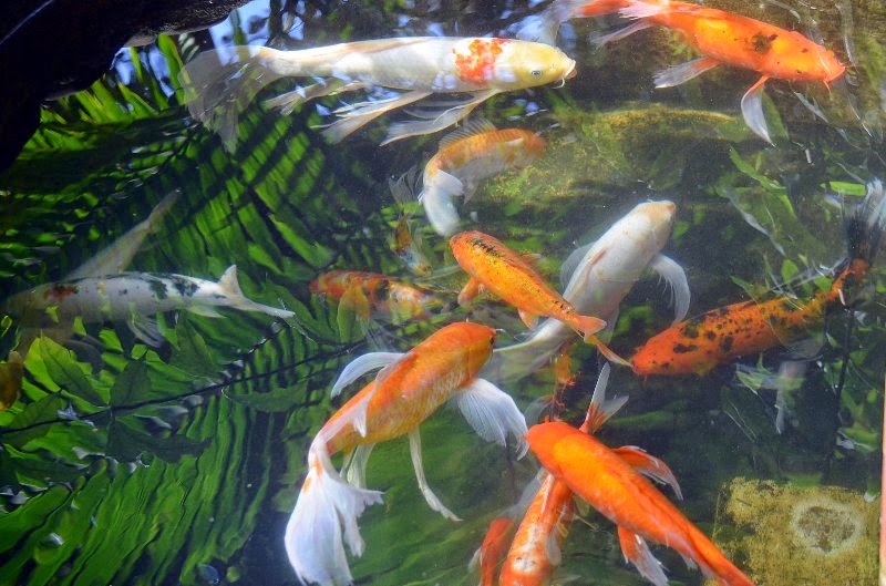 Kois y carpas de velo ,también tenían enormes cíclidos.
