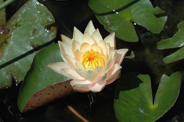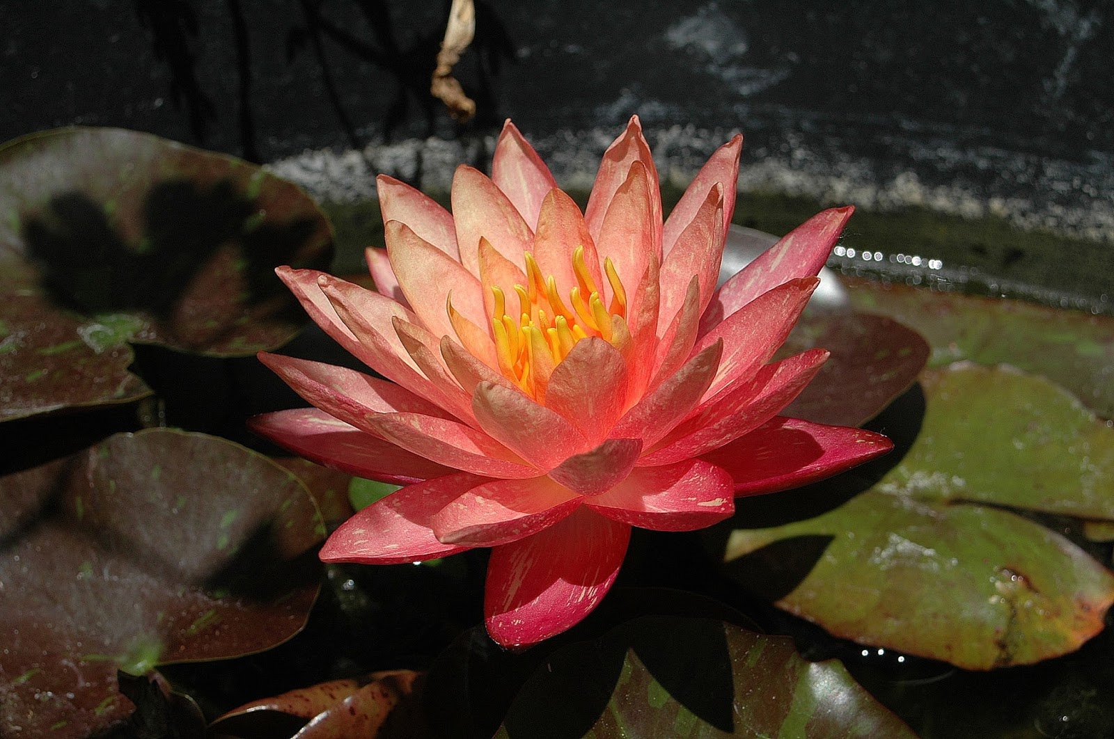 He puesto un toque rojo con la canna "Tropicana" los caladium bicolor que han brotado después de pasar el invierno resguardados en el interior con un mínimo de humedad una vez que pierden las hojas .En ella a partir de marzo echo guppys (poecilas reticulata) Son peces ovovivíparos que se reproducen muchísimo y no dejan que proliferen larvas de mosquitos.En octubre toca recogerlos para pasarlos a un acuario donde pasan el invierno.