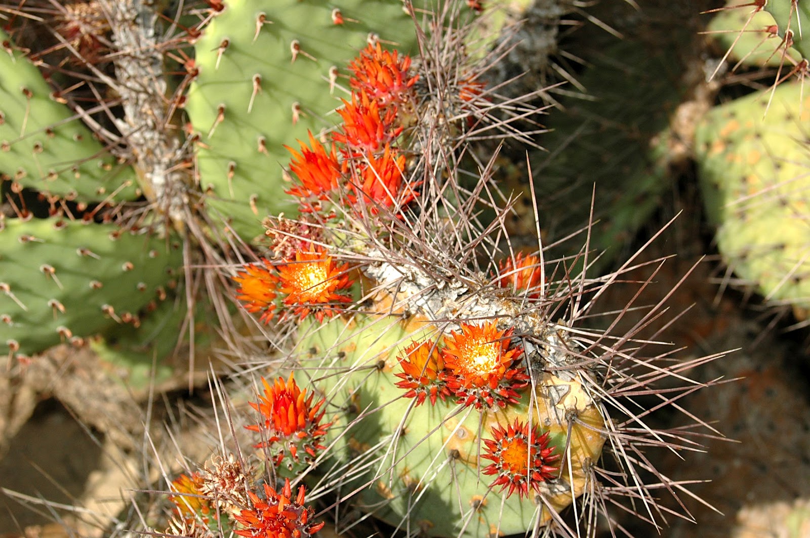 Opuntia dillenii ,considerada una de las plantas más invasoras del mundo.Yo he visto su efecto en las islas Canarias y en Madeira donde le hacen la competencia a especies autóctonas de gran valor ecológico.Originaria de Centroamérica coloniza muchos países de clima cálido o templado.