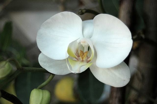 Phalaenopsis hybrida ,esta la tengo totalmente a la intemperie donde ha pasado el invierno ,se puso muy estropeada de hojas pero en primavera se regeneró y está floreciendo.Es la primera vez que dejo pasar el invierno al exterior a algunas de mis phalaenopsis y han aguantado,Eso si están en una zona muy soleada y cálida protegidas de las horas de más sol por un ricino rojo y otros arbustos.
