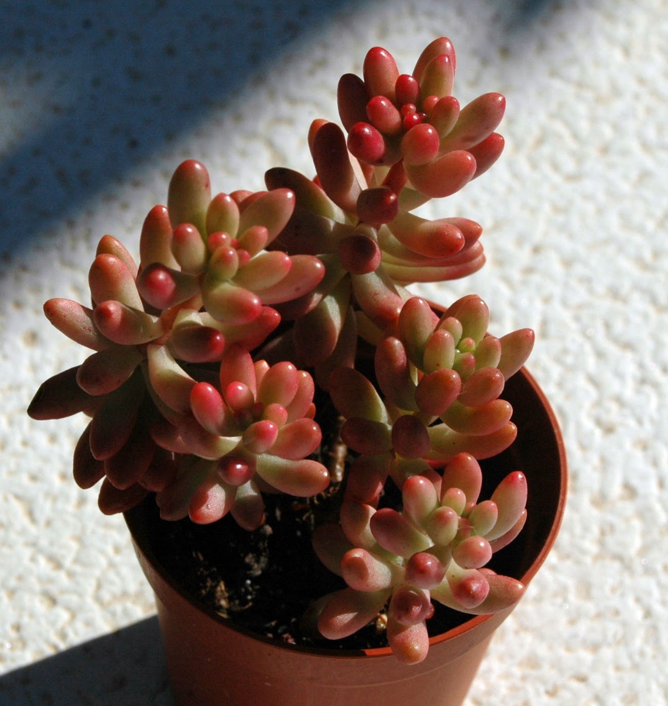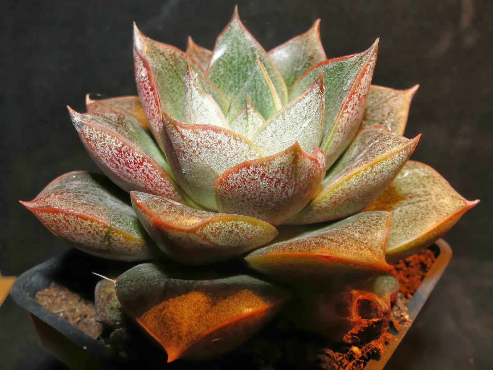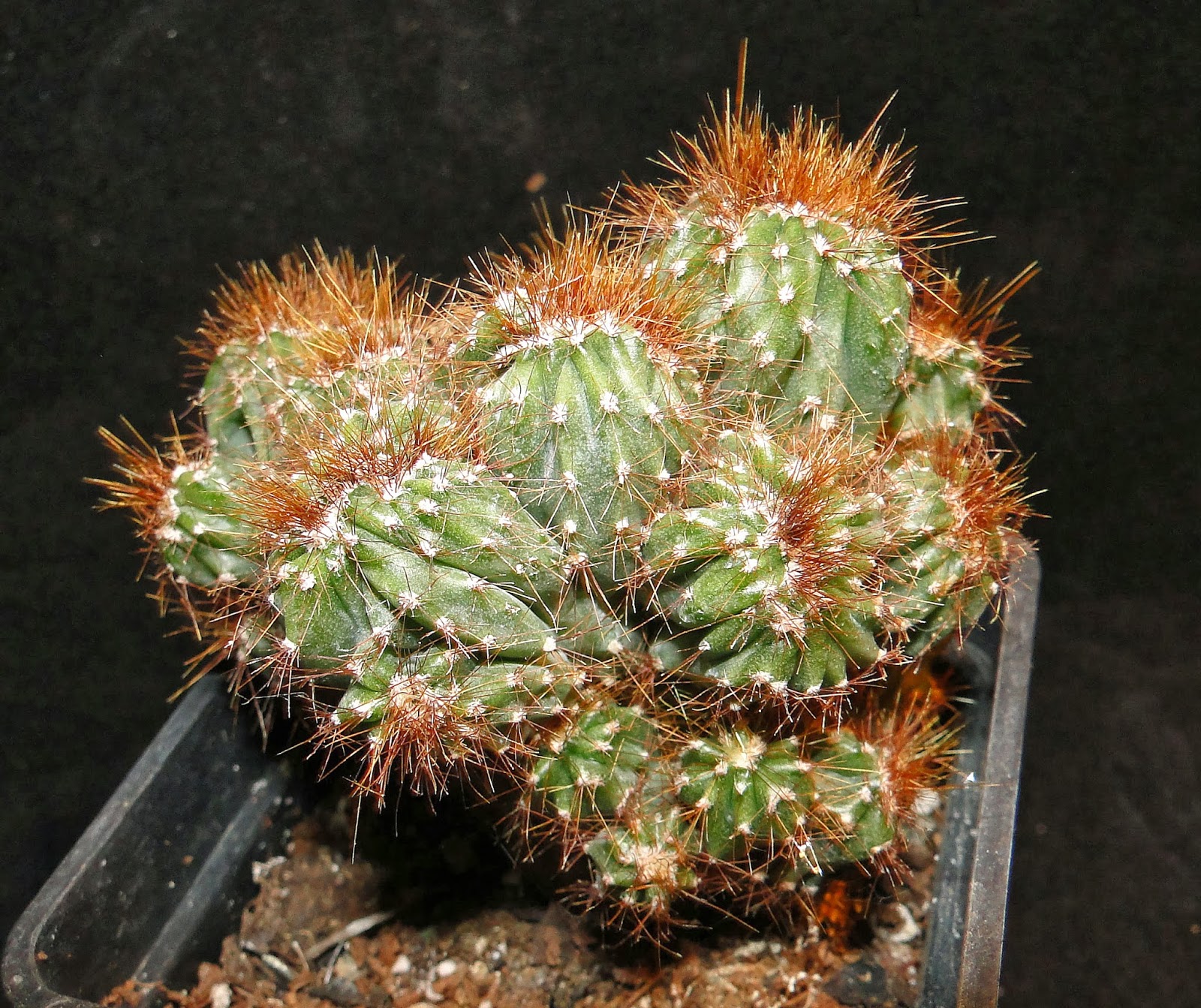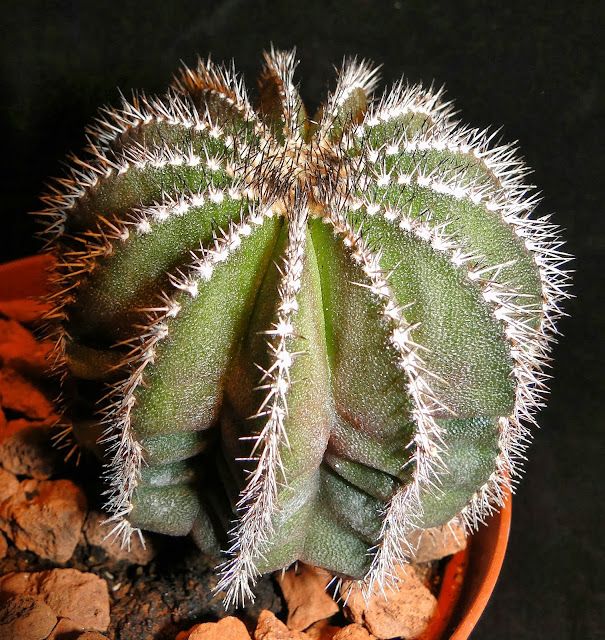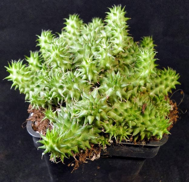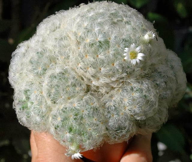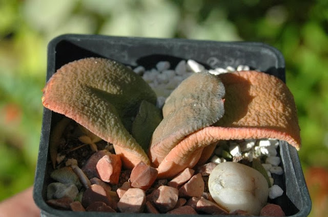 Una nueva entrega de algunas especies más de mi colección.Ahora al revisarlas para hacerles las fotos y prepararlas para el invierno he observado algunas con cochinillas de placas.He probado esta vez a combatirlas con una receta natural que se hace mezclando 2 tazas de aceite vegetal(yo utilicé de girasol) y media taza de jabón líquido(yo utilicé uno que se hace a partir de aceite reciclado).Al mezclarlo se forma una emulsión que se llama aceite blanco y que pulverizada sobre la totalidad de las plantas cubiertas con cochinillas las mata por asfixia .Yo apliqué el aceite con un pincel y puse las plantas dos días a la sombra ,después por último las fumigué con agua clara a mucha presión y las cochinillas se desprendían muertas.Seguiré investigando para ver si ha sido casual o realmente es efectivo.Lo que no se aún si las plantas se resienten con el tratamiento y aparecen manchas o pudredumbres.